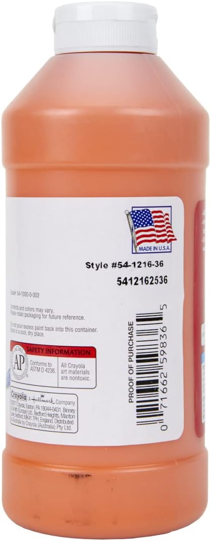 - CRAYOLA TEMPERA PAINT: Features 16oz of Orange Paint in an easy squeeze bottle,ORANGE PAINT: Featuring vibrant, richly pigmented color, this craft paint is perfect for creating eye-catching artwork. Blend with your other favorite colors to create a one-of-a-kind hue!