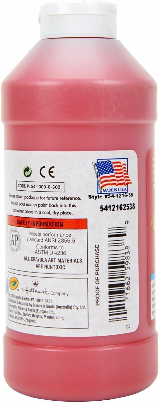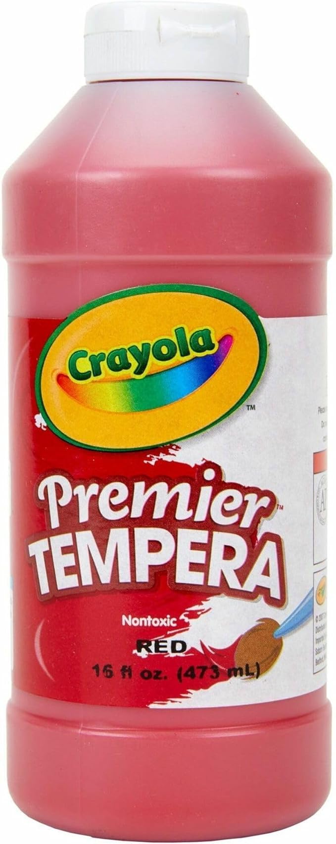 - CRAYOLA TEMPERA PAINT: Features 16oz of Red Paint in an easy squeeze bottle.