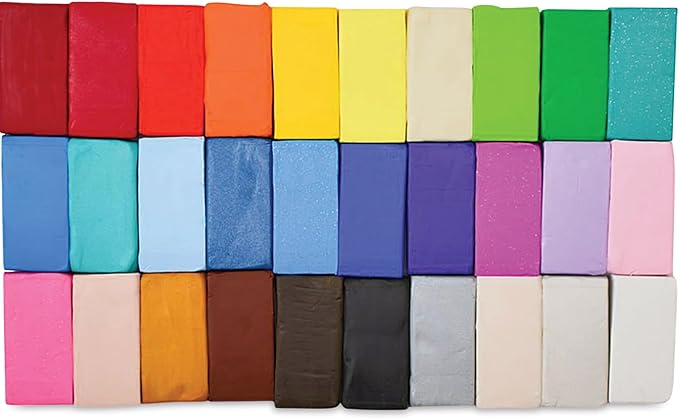 - Ideal DIY gift for everyone from kids to artists! - Includes 30 vibrant 1 oz. bars of clay: Black, Emerald, Violet, Yellow, Teal Pearl, Leaf Green, Red Hot Red, Just Orange, Ballerina, Lt. Blue Pearl, Translucent, Sweet Potato, Blue, Deep Red Pearl, Pearl, Spring Lilac, Suede Brown, Granny Smith, Gold, Lemonade, Navy Pearl, Hot Pink, Chocolate, Beige, Turquoise, Leaf Green, Sky Blue, Silver, Red, White