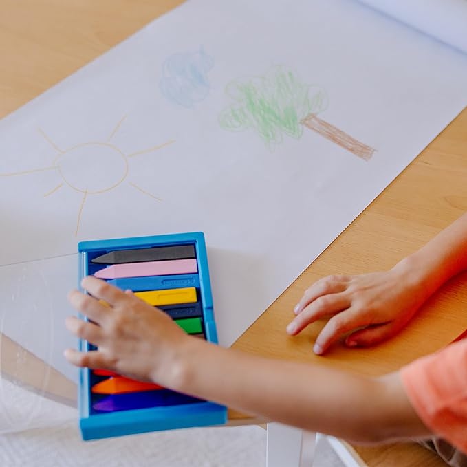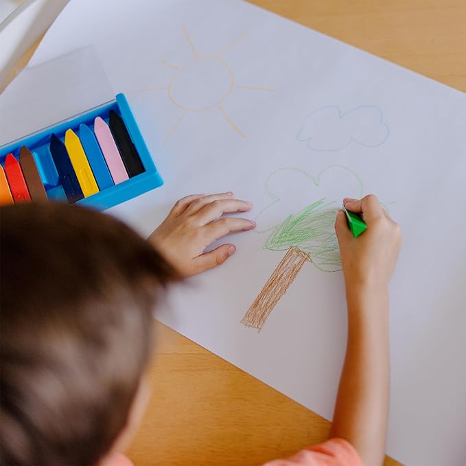 - Durable non-roll crayons