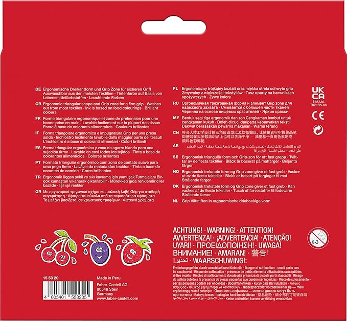 - 20 fine line markers - the Faber-Castell grip marker set includes 20 fine line coloring markers. Vibrant ink colors are made from food-grade dyes