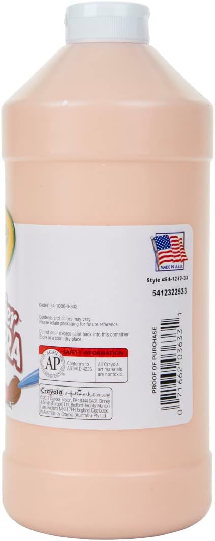 - CRAYOLA TEMPERA PAINT: Features a 32 ounce bottle of Tempera Paint in Peach.