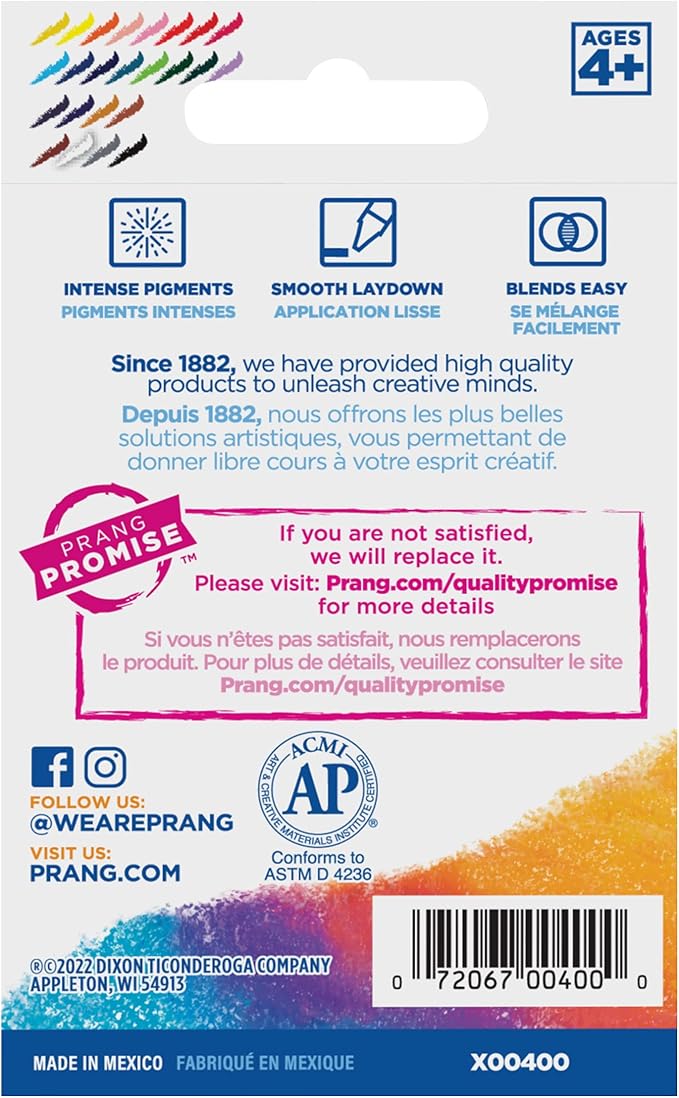 - TRUSTED BRAND: The Prang brand is beloved by children, parents, and teachers alike for its bold colors and superior durability. Prang is part of the Dixon Ticonderoga family of products which includes Ticonderoga, Dixon, Prang, Pacon, Tru-Ray, UCreate, Fadeless, Classroom Keepers, Bordette, Creativity Street, Spectra, Strathmore, Canson, Daler-Rowney, Lyra, Das, Maimeri, Princeton Artist Brush and more.