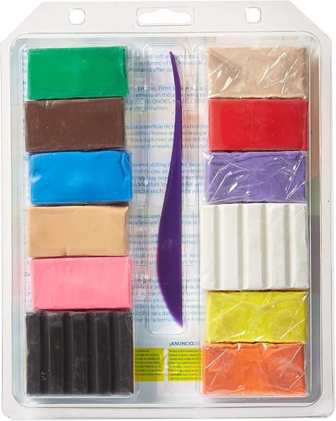 Sculpey Bake Shop Polymer Oven Bake Clay, 12 unique color set for kids, one clay modeling tool to add details to projects, made for creating holiday, DIY projects, jewelry and school projects.