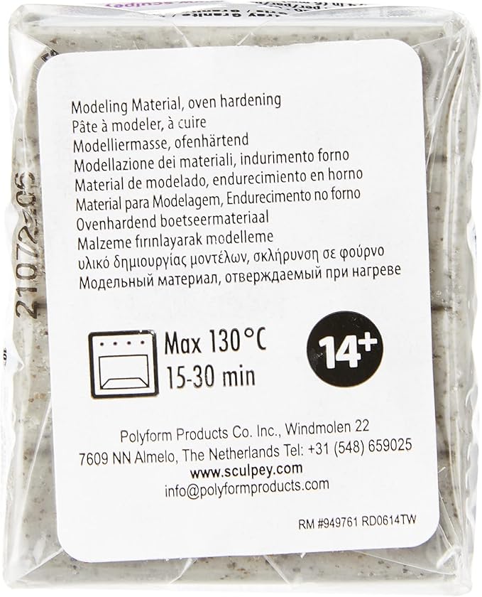 Sculpey Premo Polymer Oven-Bake Clay, Gray Granite, Non Toxic, 2 oz. bar, Great for jewelry making, holiday, DIY, mixed media and home décor projects. Premium clay Great for clayers and artists.