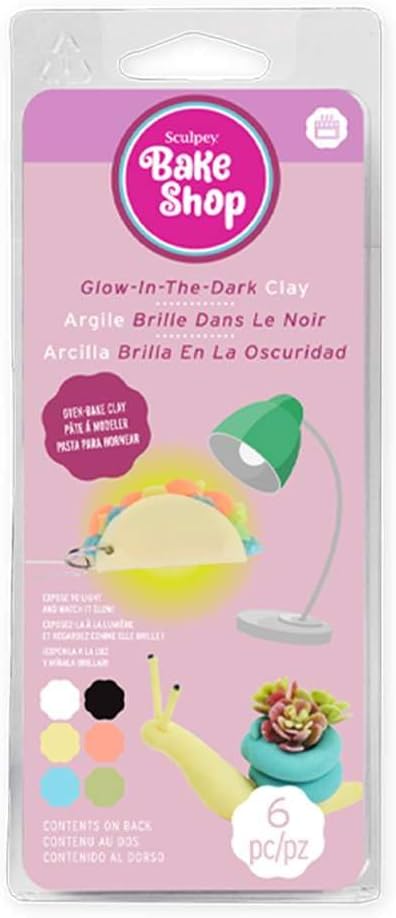 SCULPEY AMAZING ERASER CLAY Bake Shop Glow in the Dark Polymer Oven Bake Clay, 6 unique color set, clay projects glow in the dark made for creating holiday, DIY projects, jewelry and school projects.
