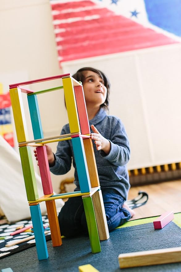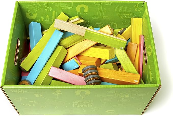 130 Piece Tegu Classroom Magnetic Wooden Block Set, Tints, 1-99 years old