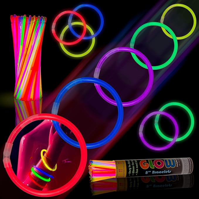 - Includes 100 8" long premium quality Glow Bracelets