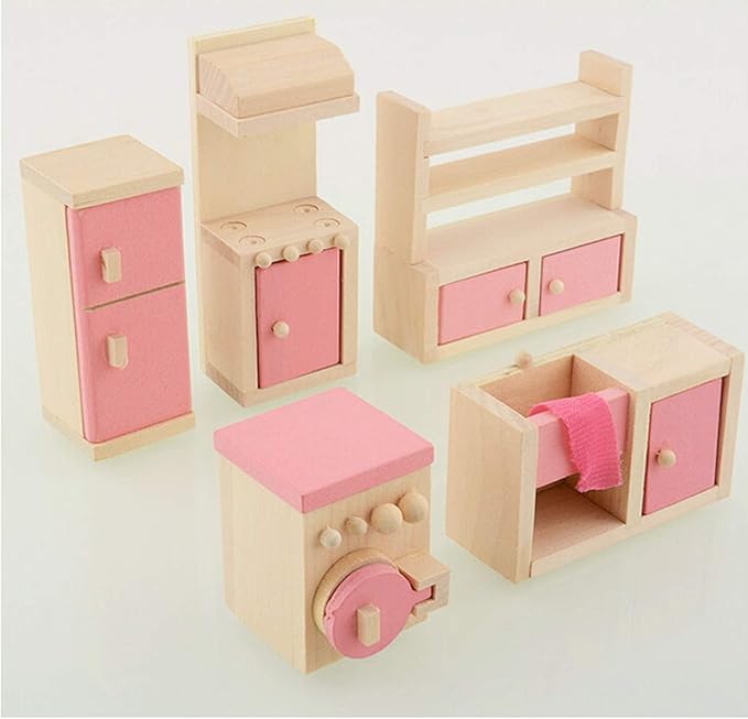 Wooden Doll House Furniture Set Toy for Baby Kids Kitchen Room