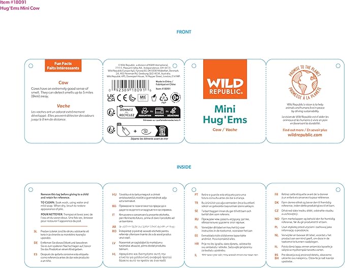 Wild Republic Cow Plush, Stuffed Animal, Plush Toy, Gifts for Kids, Hug’Ems 7 inches