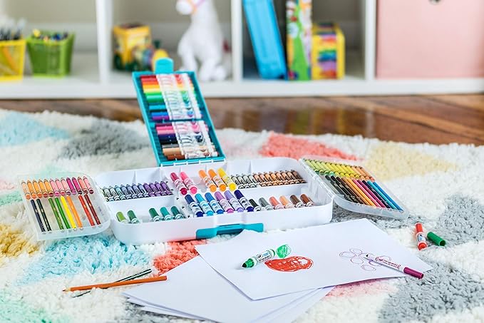- 150 CRAYOLA ART SUPPLIES: Includes 48 Crayons, 24 Pip Squeaks Washable Broad Line Markers, 24 Pip Squeaks Skinnies Washable Markers, 8 Washable Fine Line Markers, 20 Colored Pencils, and a Portable Art Case.