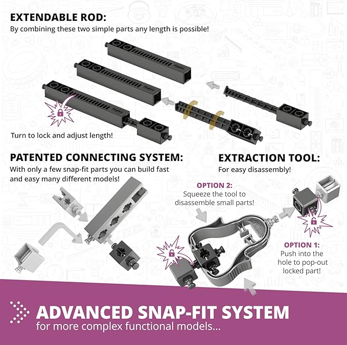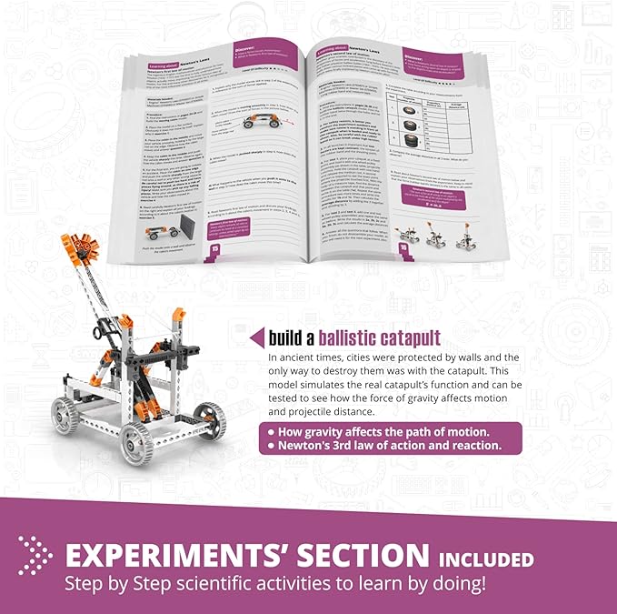 - BUILD 8 WORKING MODELS such as ballistic catapult, crash test car, balloon-powered plane and more. Children will be amazed by the endless possibilities of this STEM toy.