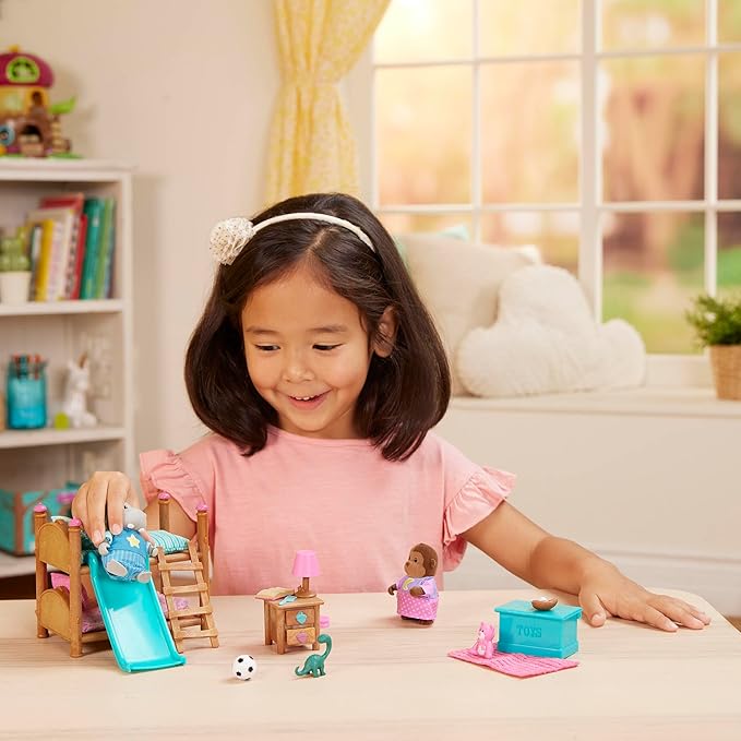 Li'l Woodzeez Bunk Beds Playset – Miniature Bedroom Furniture and Accessories – 18pc Toy Set with Bed, Toys, Book, and More – Gifts for Kids Age 3+