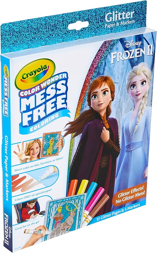 - COLOR WONDER SET: Contains 5 Color Wonder Markers and 12 Frozen Coloring Pages with Glitter Effects.