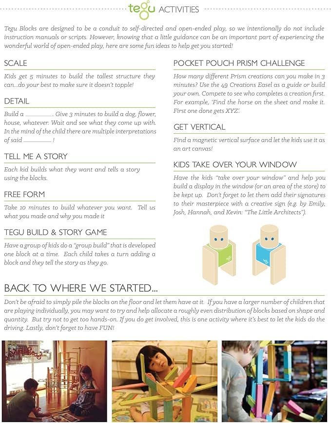 - Tegu is a building system consisting in a series of blocks and shapes appropriate for multiple age groups. It is an open-play manipulative toy with puzzle-like construction abilities