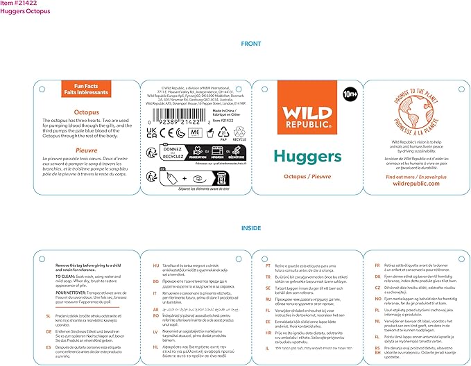 Wild Republic Huggers Octopus Plush Toy, Slap Bracelet, Stuffed Animal, Kids Toys 20cm