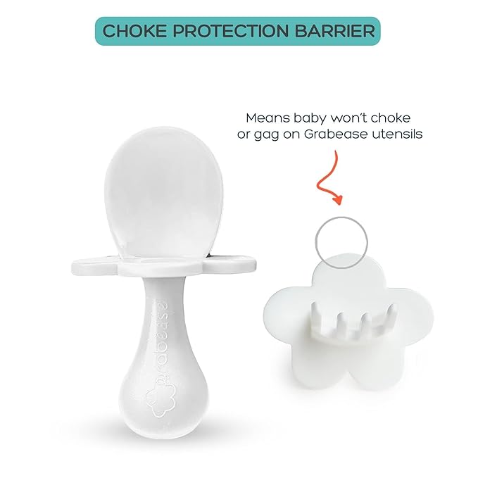 Grabease Toddler Utensils Toddler Spoons and Forks Baby Silverware Baby Self Feeding Utensils, BPA-Free & Phthalate-Free for Baby & Toddler, 1 Set, Plastic, White
