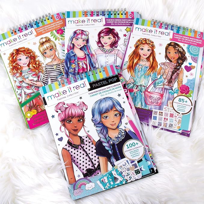 Make It Real Fashion Design Sketchbook Kit for Girls - Blooming Creativity Set with Stencils, Puffy Stickers, Design Guide - Unleash Fashion Talent, Develop Skills, for Kids Ages 6