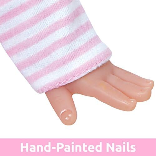 • Best Friends for Life: Sweet Baby Girl is the perfect petite baby doll for little ones to hold, play with and love! This cute mini baby is 11” tall with a soft and cuddly body and fresh baby powder scented vinyl. She comes in a removable stripped pink & white onesie and a matching pink headband with a stripped bow, perfect for little hands to develop essential motor skills.