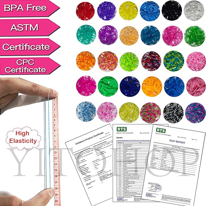 • [ HIGH QUALITY LATEX & NON-TOXIC ] WE GUARANTEE Hundred Percent safe and non-toxic, free from latex, lead and phthalates. The rubber loom band has excellent performance on elasticity, softness and durability, it is optimal choice to make bracelets, arts and crafts gift, Christmas decoration,...ect.