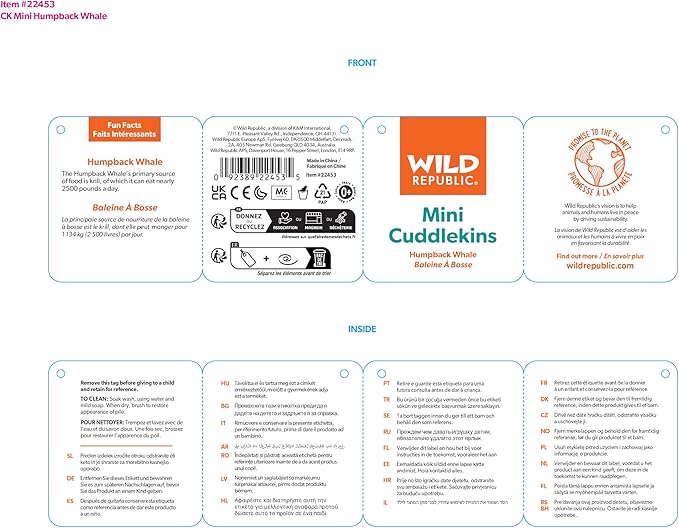 Wild Republic Humpback Whale Plush, Stuffed Animal, Plush Toy, Gifts for Kids, Cuddlekins, 13 Inches
