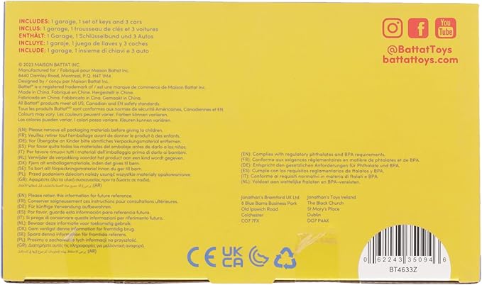 - FUN AND INTERACTIVE: Unlock and open the doors, push the colored button on top to see the car exit by itself. Vroooom!.HANDY HANDLE: Perfect for on the go! Secure the cars inside and grab the handle on the side..SAFE AND STURDY: This toy car garage is made of strong and durable plastic. All of Battat's toys meet or exceed the highest safety standards..DIMENSIONS: This toddler garage playset is 11" (L) x 7.5" (W) x 6.6" (H)..TRUSTWORTHY: Battat's a family-owned company, established in 1897.