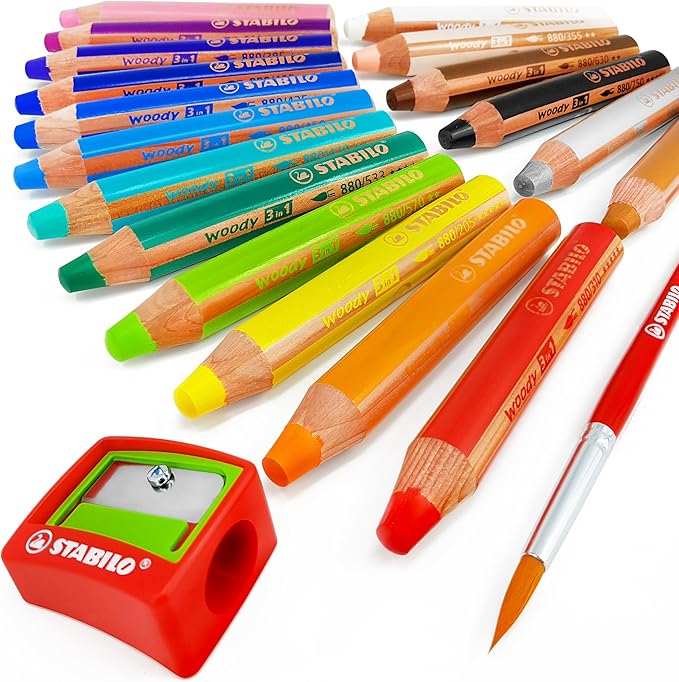 - Set of 18 Woody 3 in 1 aquarelle pencils from STABILO.