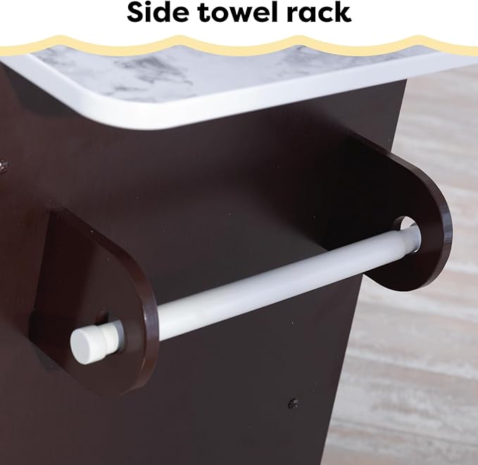 - REALISTIC LOOK: Tile-look backsplash in trendy gray with marble-esque countertops make this a dream play kitchen for kids. There's even a functional towel rack