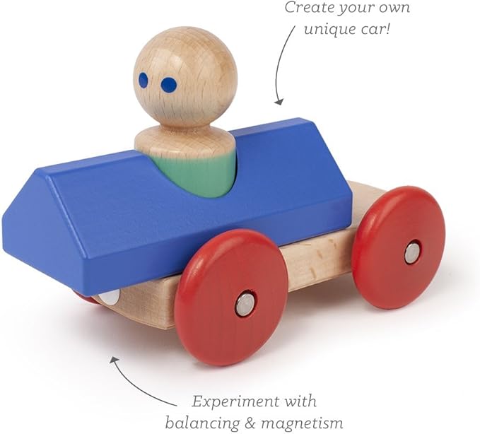 3 Piece Tegu Magnetic Racer Building Block Set, Blue Big Top