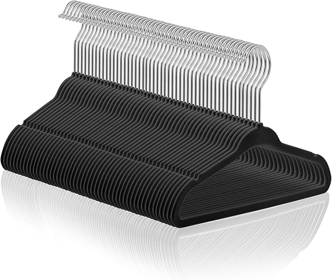 Casafield 50 Velvet Baby Hangers - 11" Size for Infant & Toddler Clothes - Black
