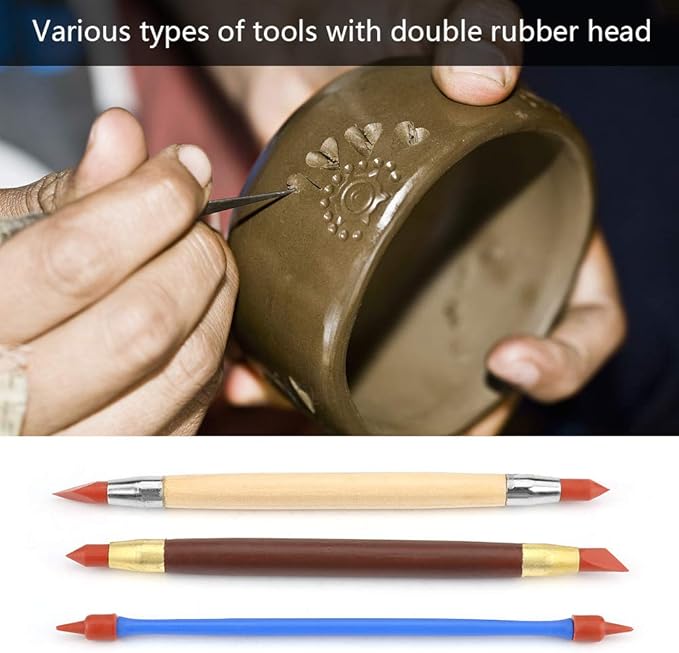 3 Pcs/set Clay Shaping Tools Silicon Polymer Head Pottery Clay Sculpting Modeling Pen Removing Traces DIY Tool