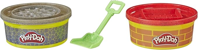 - Rock out With imagination – build a path to creative fun and construct towers, walls, or anything else you can imagine with these 2 extra large cans of Play-Doh brick and stone.