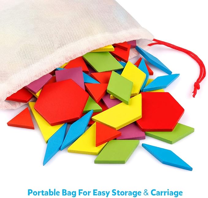 - Unlock Creativity with Various Patterns: 130 blocks are plenty for making many different color patterns. These wooden pattern blocks work with the pattern cards perfectly. It can effectively promote kids' recognition on shapes, color and space, stimulate their imagination and creativity., with a drawstring bag for easy travel and storage.