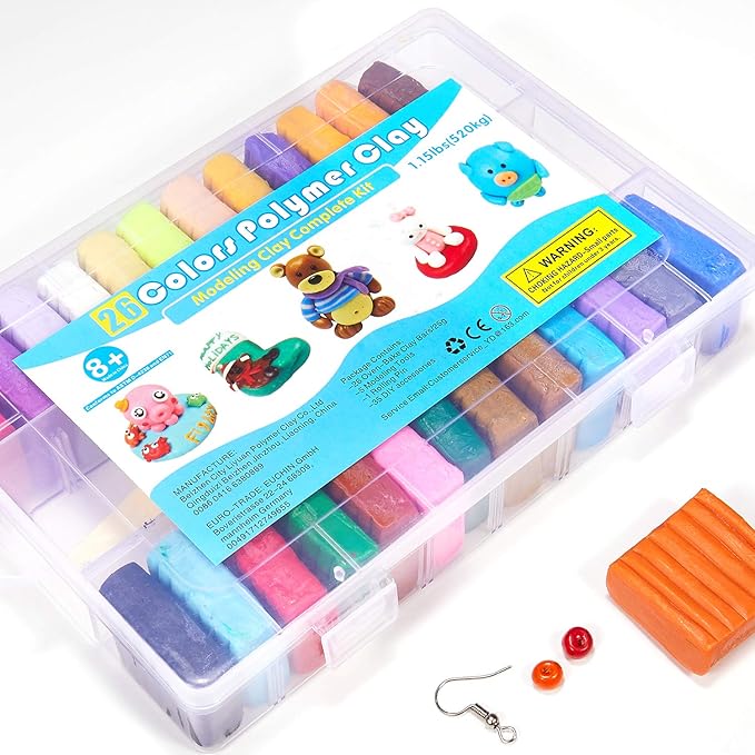 - Super clay set: 26 packs in 26 different color polymer clay included, 0.7 oz (20g) / block, 16.9 oz /480g in total. with 5* tools, 1* accessory pack, 1* project booklet, 1* storage box.