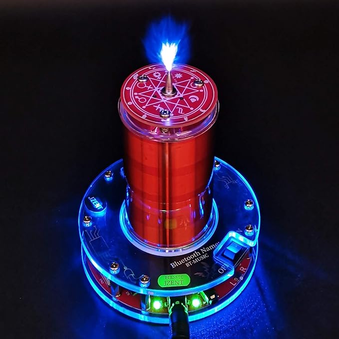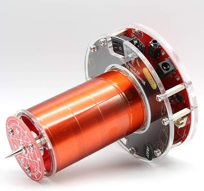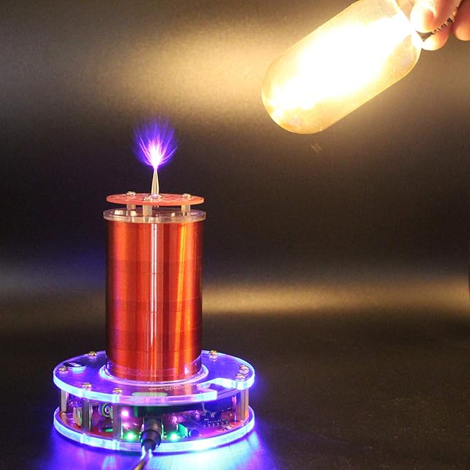 - HIGH QUALITY & COOL ★★★★★ The coil is separated from the base to ensure safe transportation. The middle circuit board is assembled with many small components, arranged neatly. Beautiful appearance, the base is equipped with LED lights. If you turn on the Tesla coil at night, like a beautiful lighting show, very cool.