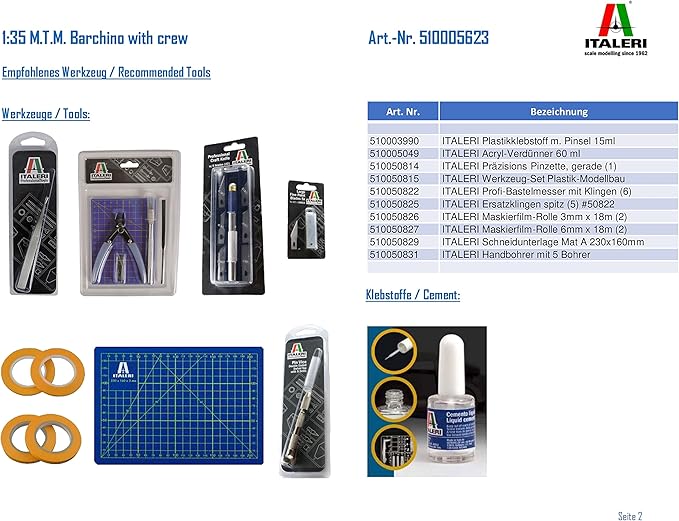 Italeri 5623 MTM Barchino with Crew, 1:35 Scale, Plastic Model Kit, Plastic Model Kit, Model Making, Grey, 01:35:00
