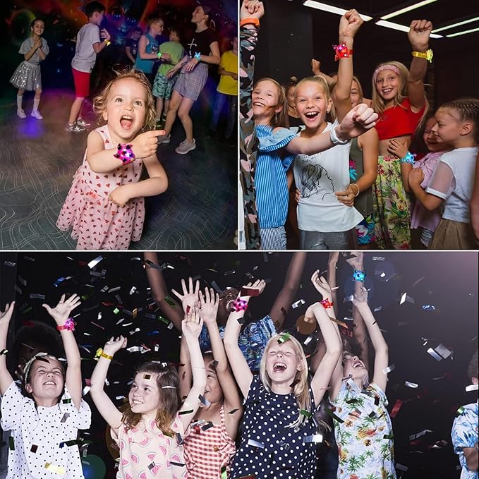 - Party Favors for Kids - Glow in the dark bracelets are perfect for kids birthday party, glow party, carnival prizes, roller skate skating, pinata stuffers, treasure box toys, prize box toys for kids classroom rewards, Christmas stocking stuffers. All of the led bracelets for kids are bright enough to attract children's sights.