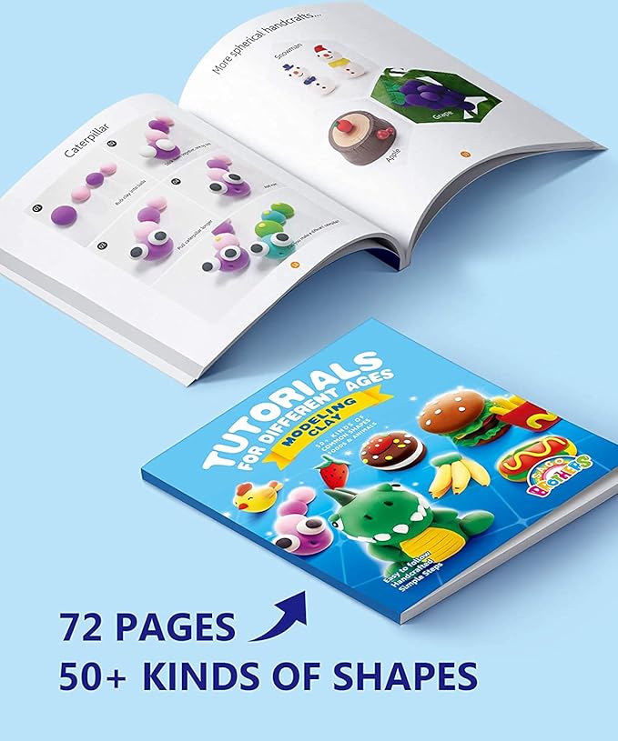 - 72 PAGES TUTORIAL IDEA BOOK - Simple and easy steps for kids. Including over 50 kinds of common shapes, foods, and animals that benefit for color recognition, mixing and matching, as well as learning how to paint. Tutorials allow kids to start from imitation, until they can create their own work independently. Popular air dry clay as gifts for girls, crafts for girls, boys toys.