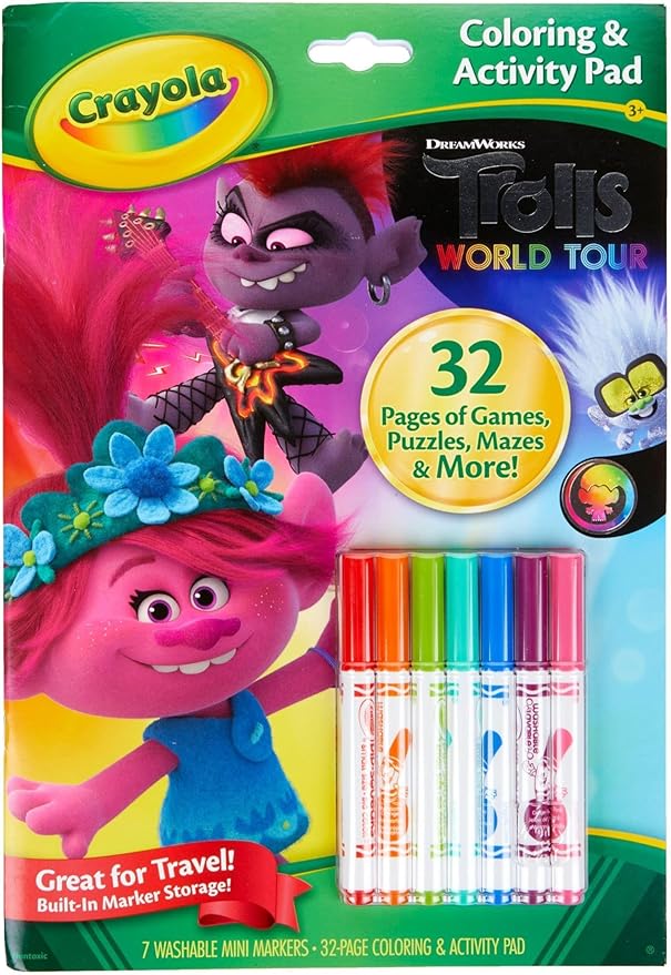 Crayola Trolls World Tour Color & Activity Pad, 32 Coloring Pages and 7 Mini Washable Markers Markers, Trolls 2 Gift for Kids, Ages 3+