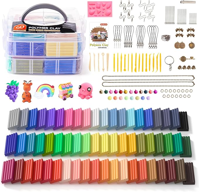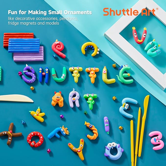 - 60 COLORS POLYMER CLAY KIT: Shuttle Art polymer clay set contains 60 colors 0.7 oz/block oven bake clay, together with 19 useful clay tools and 16 kinds of accessories. Ideal modeling clay for kids and beginners to make small ornaments, model animals, characters, etc
