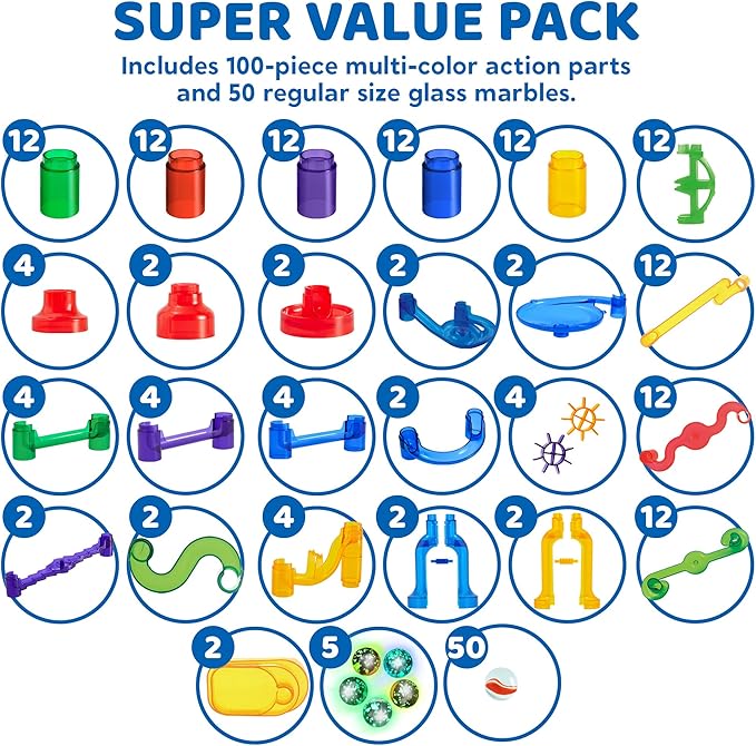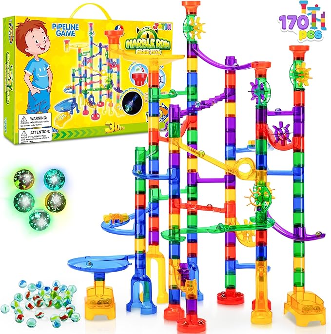 - 170 Pcs premium marble run set with transparent parts, endless fun for your child to watch marbles run along tracks.