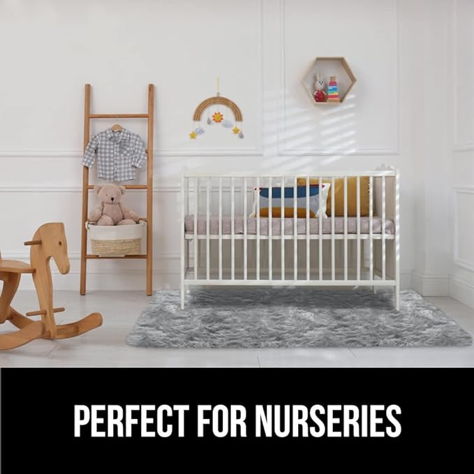 Gorilla Grip Fluffy Faux Fur Sheep Rug, Machine Washable Soft Furry Area Rugs, Rubber Backing, Plush Floor Carpets for Baby Nursery, Bedroom, Living Room Shag Carpet, Luxury Home Decor, 3x5, Gray