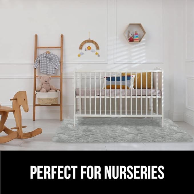 Gorilla Grip Fluffy Faux Fur Rug, 6x9, Machine Washable Soft Furry Area Rugs, Rubber Backing, Plush Floor Carpets for Baby Nursery, Bedroom, Living Room Shag Carpet, Luxury Home Decor, Light Gray