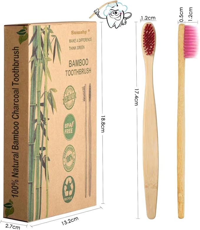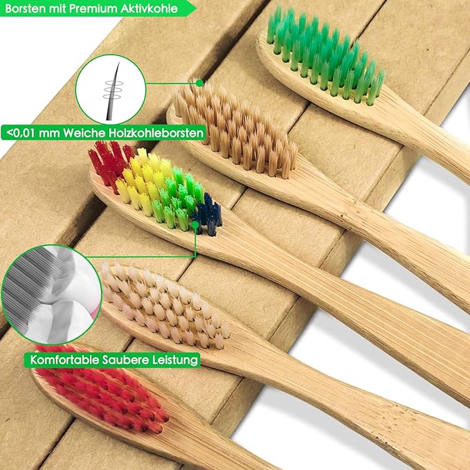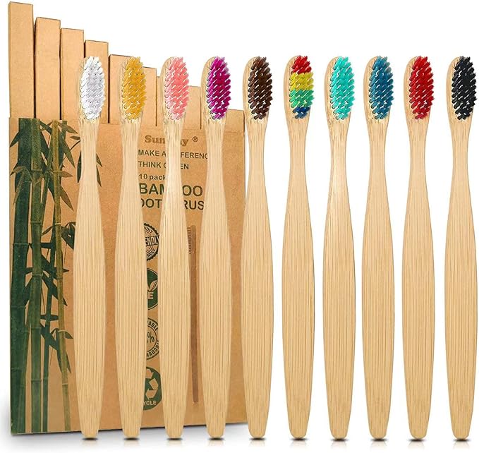 10 Color Soft Bristles Natural Bamboo Toothbrushes Set, Premium BPA Free for Best Clean, Eco-Friendly, Plastic-Free, Vegan, Biodegradable & Compostable Charcoal Wooden