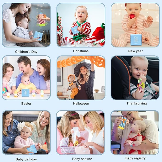 - PERFECT BABY GIFTS -- Give these Soft Baby Rattles Toys as the perfect infant toy gift.Suitable for Baby showers/Baby sprinkle/Sip & See gift/Newborn baby gift/Birthday gift/Registry gift/Easter/Halloween/Thanksgiving/Christmas/Holiday gift/Christening gift/'Just because'gift.