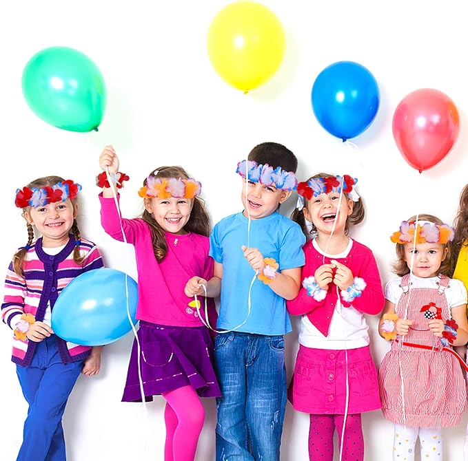 - 80 PCS LUAU PARTY SUPPLIES: 20 Set with 20 pieces elastic necklaces, 20 pieces headband and 40 pieces wristband. This party decoration keeps you ready for any birthday and graduate party.