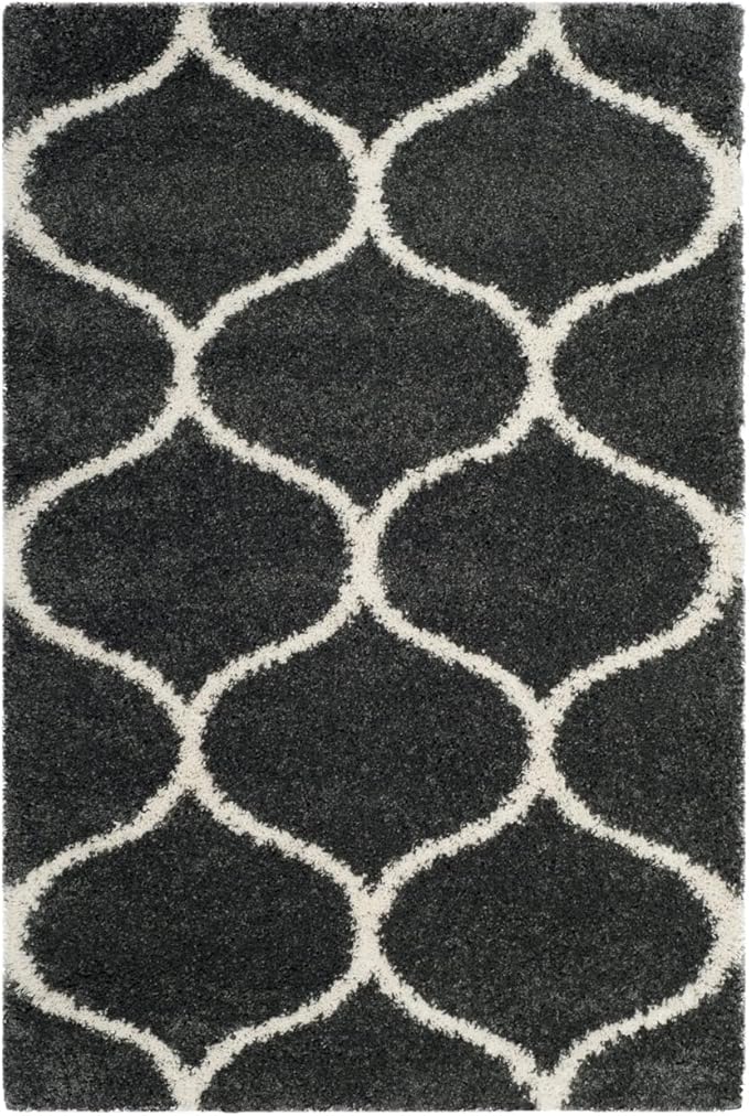 SAFAVIEH Hudson Shag Collection Accent Rug - 2' x 3', Dark Grey & Ivory, Trellis Design, Non-Shedding & Easy Care, 2-inch Thick Ideal for High Traffic Areas in Entryway, Living Room, Bedroom (SGH280G)