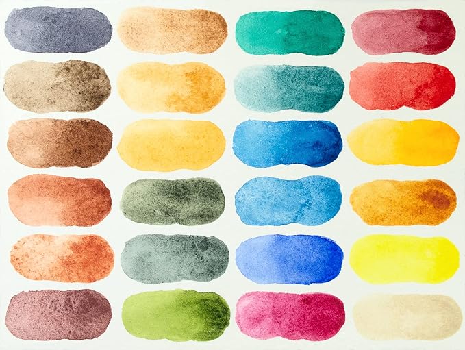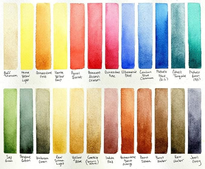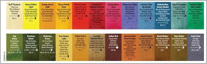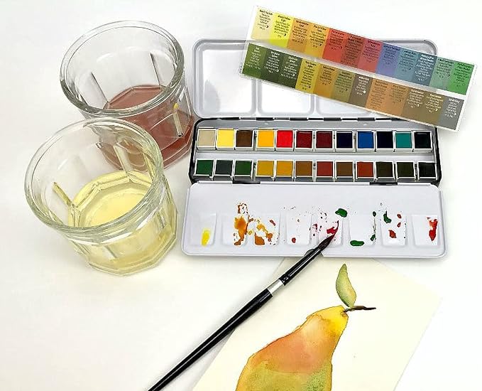 - Includes: 24 watercolors (284650009 Buff Titanium/284650041 Hansa Yellow Light/284650238 Quinacridone Gold/284650040 Hansa Yellow Deep/284650085 Pillol Scarlet/28465 Permanent ants Zarin Crimson/284650092 Quinacridone Rose/284650106 Ultramarine Blue/284650021 Cerulean Blue Chromium/284650077 Phthalo Blue (Green Shade)/284650078 (blue shade)/2 84650102 SUPP GREEN/284650194 PERGREEN/284650109 UNDERSEA GREEN/284650233 ROCHENNALITE/284650114 YELLOW OCHER/28465014 GASITE BROWN OCHER Indian red/284 650086 Quinacridon Burnt Orange/284650010 Burnt Sienna / 284650011 Burnt Amber/284650097 Low Amber/284650239 Janes Grey, 24 Empty Containers for Watercolor Paint, 2 Metal Box