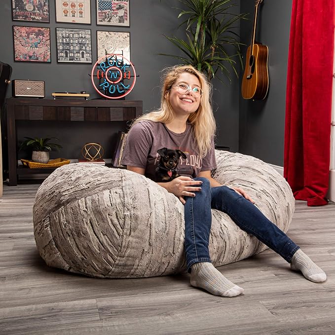 Jaxx Sofa Saxx Bean Bag Lounger, 4-Feet, Luxe Fur-Silver Fox