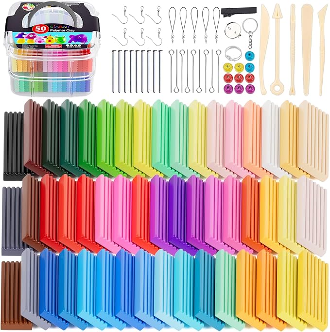 Polymer Clay 50 Colors, CiaraQ Modeling Clay Starter Kits for Kids, Oven Baked Model Clay with Sculpting Tools, Safe and Non-Toxic, Great for Children and Artists